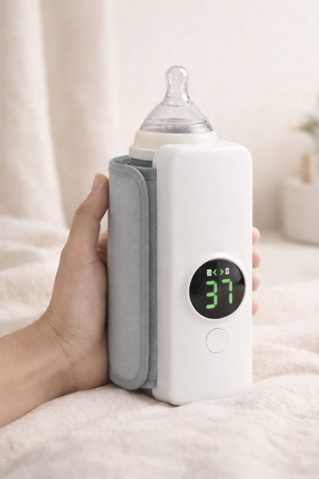 4. Allumez le chauffe-biberon à l’aide de l’unique bouton (appui prolongé de 5 secondes)